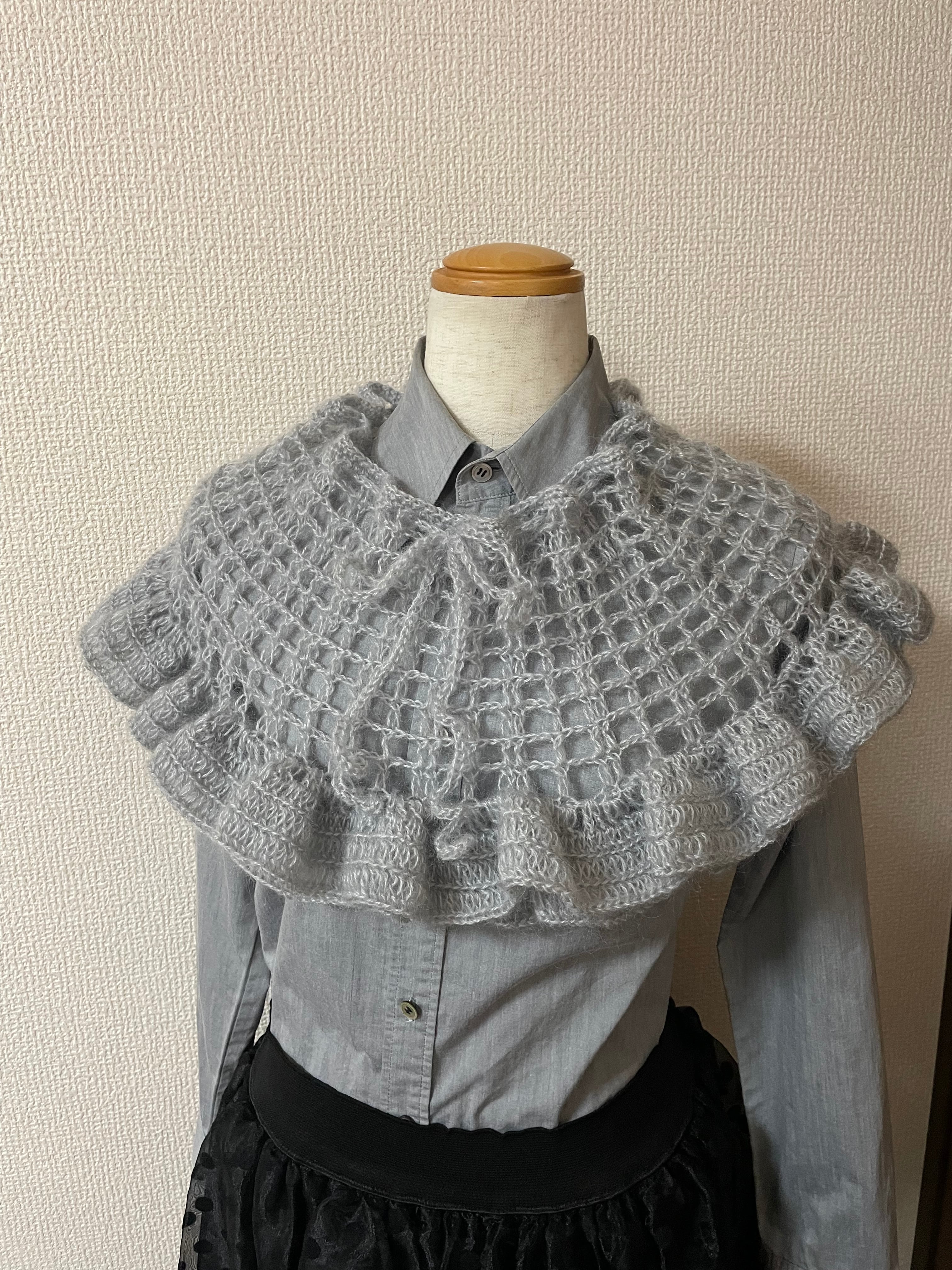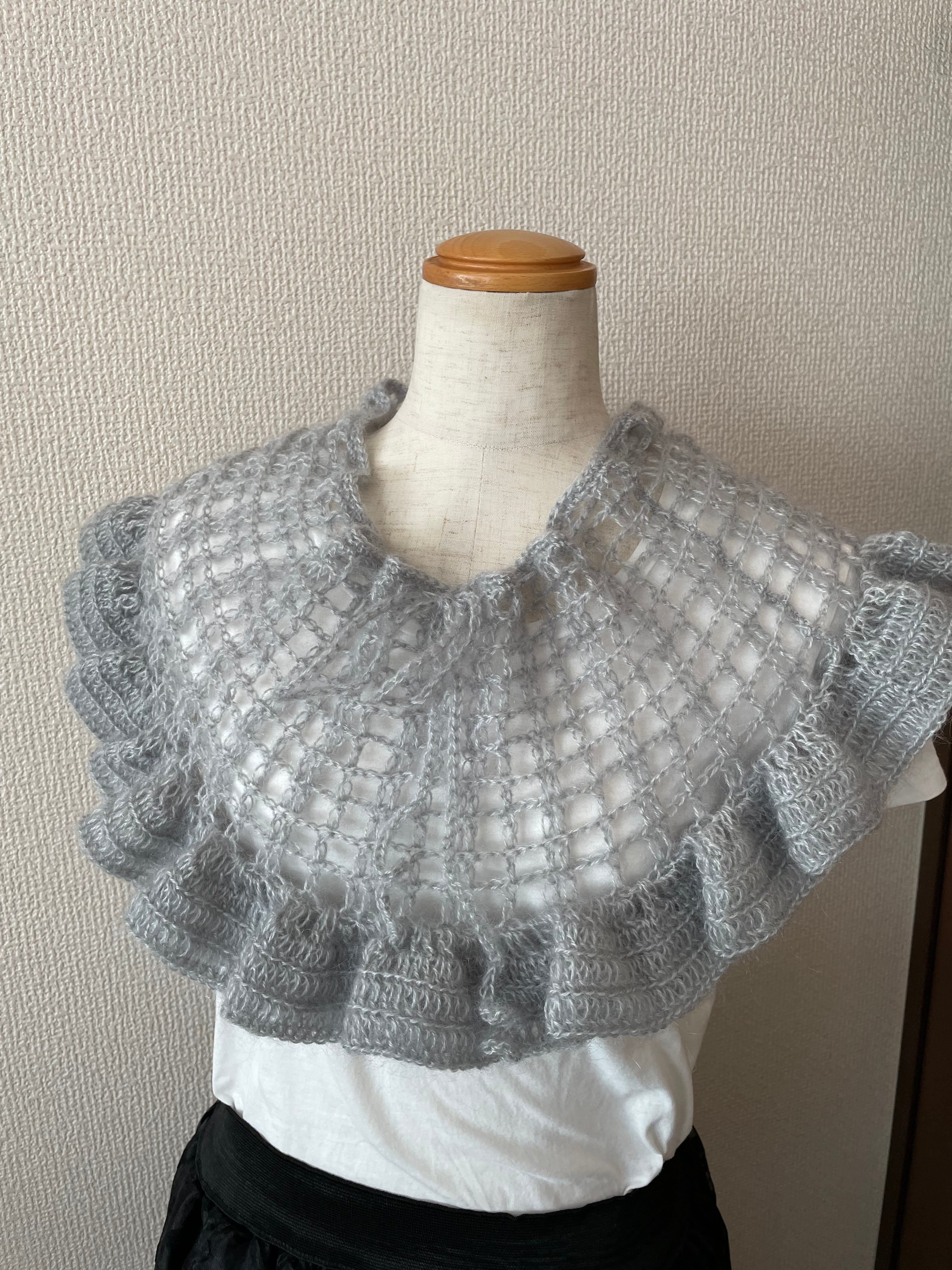 かぎ針編みキット☆モヘアのフリルショートポンチョ