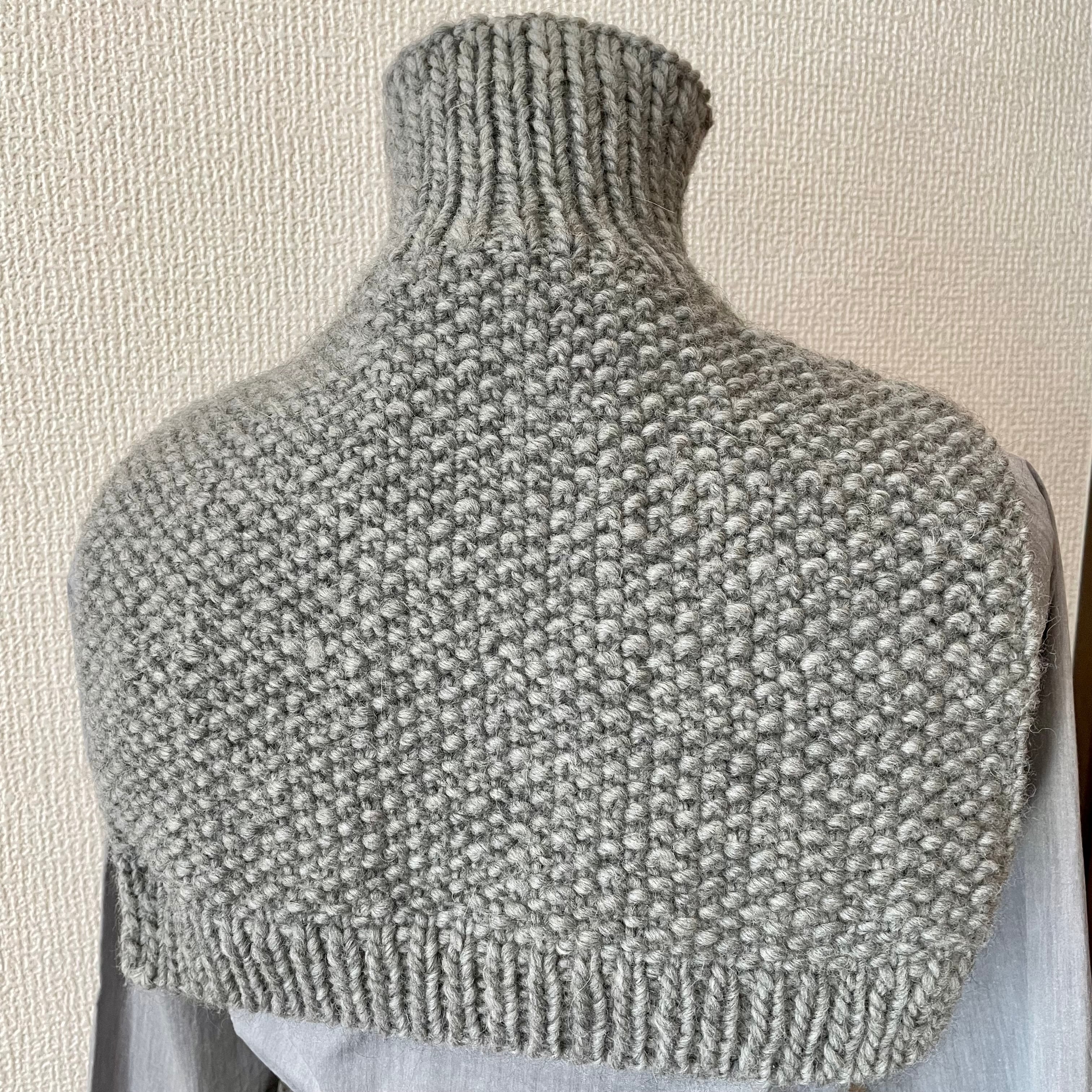今までに無かった、ウェア未満ネックウォーマー以上の防寒アイテムで、太めの棒針を使い極太のウール糸を編んでいきます。